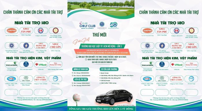 Ban Tổ chức trân trọng kính mời các golfer, cựu giảng viên, viên chức, cựu sinh viên, cựu học viên, đối tác và bạn bè thân hữu đăng ký tham gia để cùng nhau lan tỏa tinh thần gắn kết, tri ân và đồng hành cùng Trường Đại học Luật TP. Hồ Chí Minh.