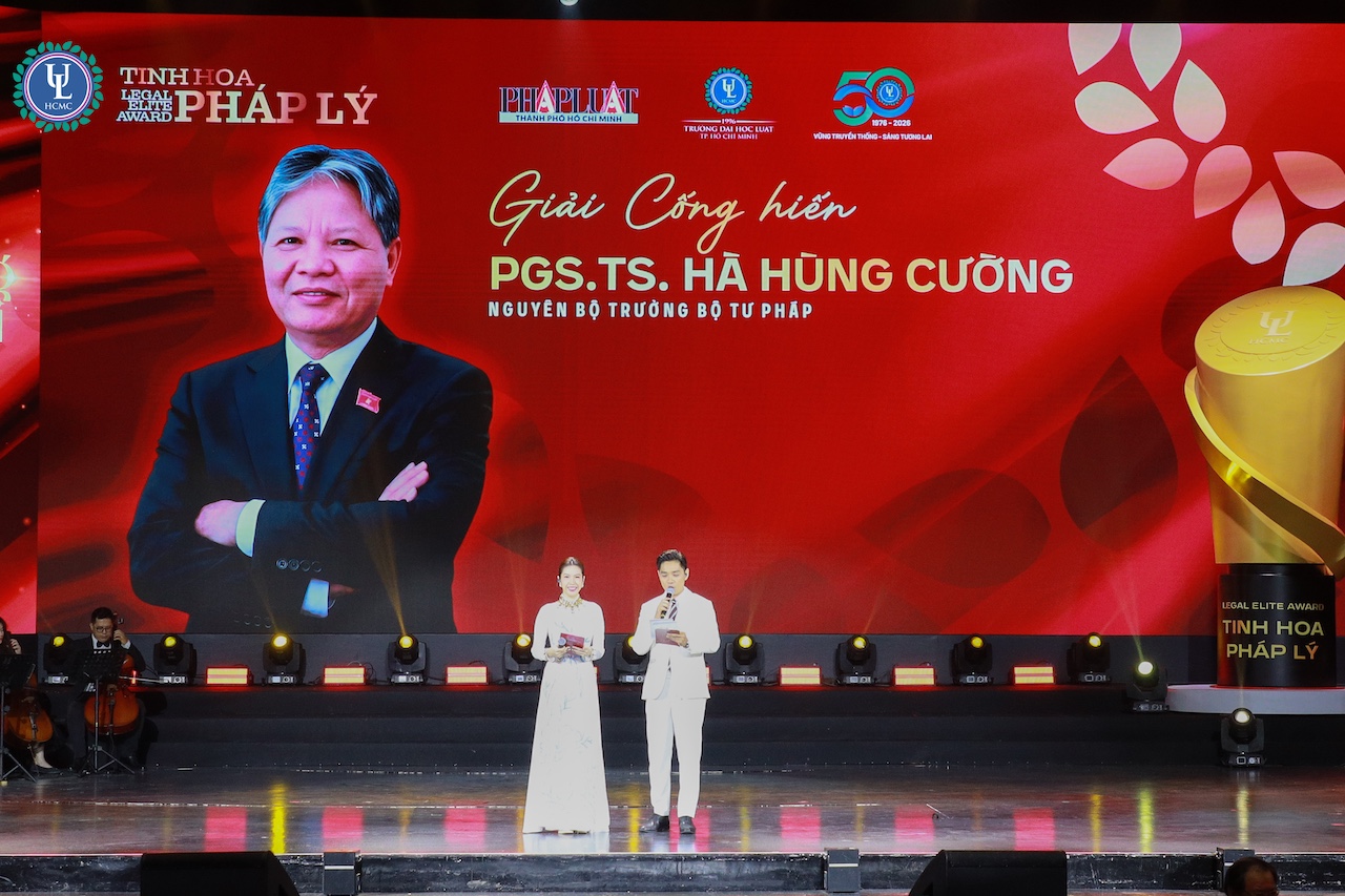 Tiếp nối những cảm xúc lắng đọng là nghi thức trang trọng đón nhận Huân chương Lao động hạng II, đánh dấu sự ghi nhận xứng đáng cho những nỗ lực và đóng góp bền bỉ của Nhà trường trong sự nghiệp giáo dục và đào tạo. Cùng với đó, khoảnh khắc vinh danh các thế hệ Hiệu trưởng, Ban Giám hiệu qua các thời kỳ và các tập thể, cá nhân xuất sắc đã trở thành điểm nhấn đặc biệt, không chỉ thể hiện sự tri ân sâu sắc mà còn khẳng định giá trị của sự kế thừa và tiếp nối. Nối tiếp mạch sự kiện là Lễ trao giải thưởng “Tinh hoa Pháp lý – Legal Elite Award 2026”, nơi những cá nhân tiêu biểu trong lĩnh vực đào tạo, nghiên cứu và xây dựng pháp luật được xướng tên, góp phần tôn vinh trí tuệ và lan tỏa những giá trị học thuật bền vững.