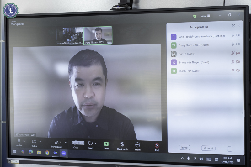 Vào sáng ngày 18/12/2025, tại phòng họp A.803, cơ sở Nguyễn Tất Thành, Trường ĐH Luật TP. HCM đã tổ chức họp Hội đồng nghiệm thu cấp cơ sở đề tài KHCN cấp Bộ với mã số B2024 - LPS - 02 chủ đề "Phòng ngừa và xử lý các tội vi phạm quy định pháp luật về bảo vệ động vật hoang dã" do PGS.TS. Lê Huỳnh Tấn Duy làm chủ nhiệm.