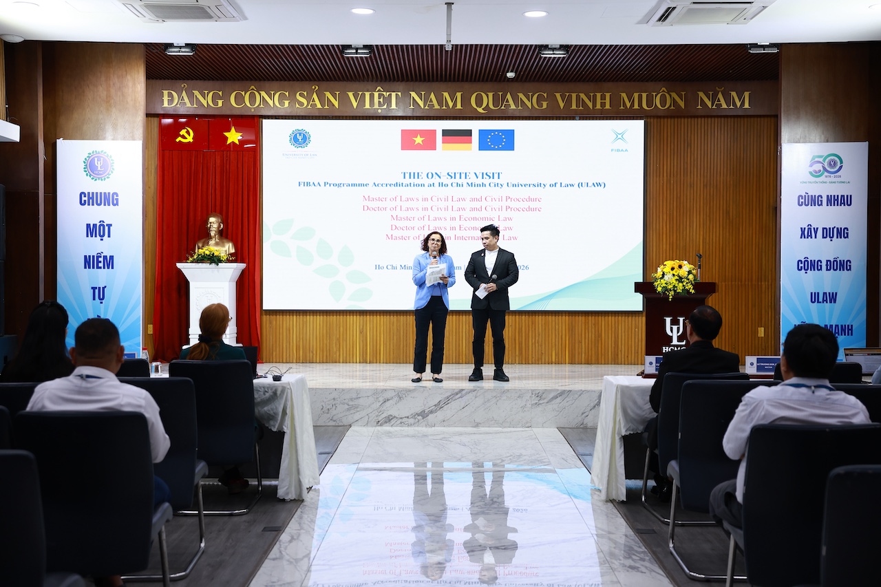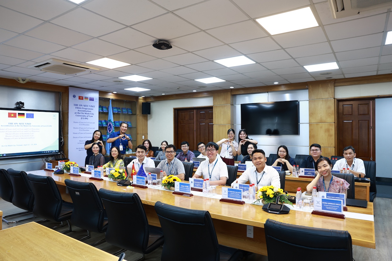 Chiều ngày 23/4/2026, Trường Đại học Luật TP.HCM đã tổ chức phiên bế mạc đợt khảo sát trực tiếp lần thứ hai phục vụ kiểm định chất lượng các chương trình đào tạo theo tiêu chuẩn của Tổ chức kiểm định chất lượng giáo dục quốc tế FIBAA (Foundation for International Business Administration Accreditation). Sau hai ngày 22-23/4 làm việc khẩn trương, nghiêm túc, đợt khảo sát đã khép lại với nhiều đánh giá tích cực từ phía đoàn chuyên gia quốc tế đối với hệ thống đào tạo và năng lực bảo đảm chất lượng của Nhà trường.