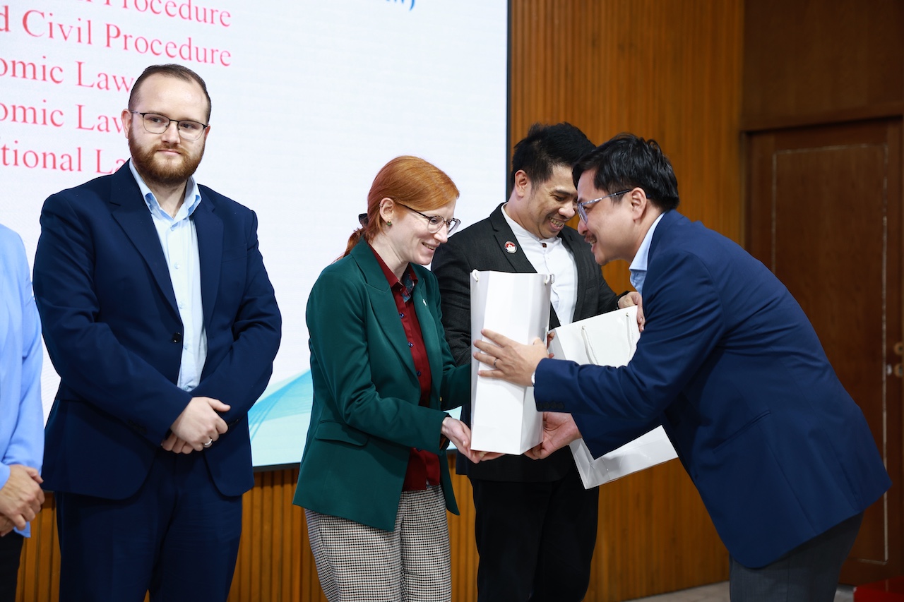 Trong phát biểu đáp từ, PGS.TS. Trần Việt Dũng – Phó Hiệu trưởng Trường Đại học Luật TP.HCM bày tỏ sự trân trọng đối với những nhận định khách quan và các khuyến nghị giàu giá trị từ đoàn chuyên gia FIBAA, đồng thời nhấn mạnh những góc nhìn chuyên môn từ các chuyên gia quốc tế đã mang lại cho Nhà trường cơ hội nhìn nhận lại một cách toàn diện các hoạt động đào tạo và quản trị; giúp Nhà trường tiếp tục hoàn thiện và nâng cao chuẩn mực trong bối cảnh hội nhập.