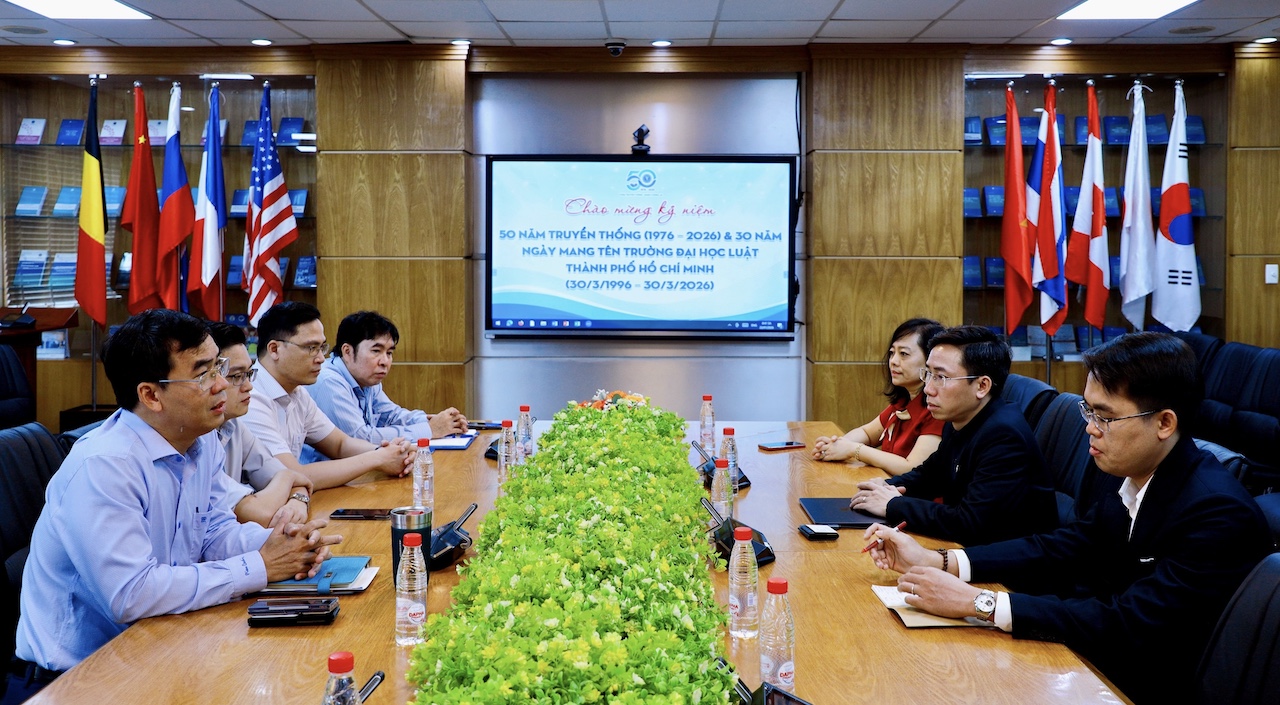 Ngày 22/01/2026, tại cơ sở Nguyễn Tất Thành, Lãnh đạo Trường Đại học Luật TP.HCM (ULAW) đã có buổi làm việc cùng lãnh đạo Tập đoàn Công nghệ CMC. Buổi làm việc tập trung vào định hướng hợp tác trong lĩnh vực chuyển đổi số, đổi mới sáng tạo và ứng dụng trí tuệ nhân tạo (AI) trong giáo dục đại học, trong khuôn khổ kết nối Liên minh AI Âu Lạc Việt Nam.
