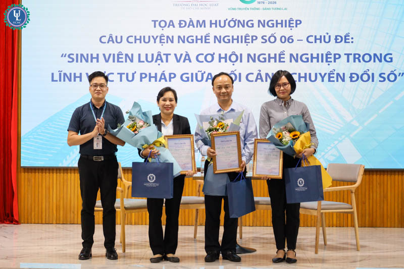 Nhằm mang đến cái nhìn toàn diện về cơ hội nghề nghiệp trong lĩnh vực tư pháp giữa xu thế số hóa, vào ngày 14/11, Trường Đại học Luật TP.HCM tổ chức toạ đàm hướng nghiệp “Sinh viên luật và cơ hội nghề nghiệp trong lĩnh vực tư pháp giữa bối cảnh chuyển đổi số” tại Hội trường A.1002, cơ sở Nguyễn Tất Thành.