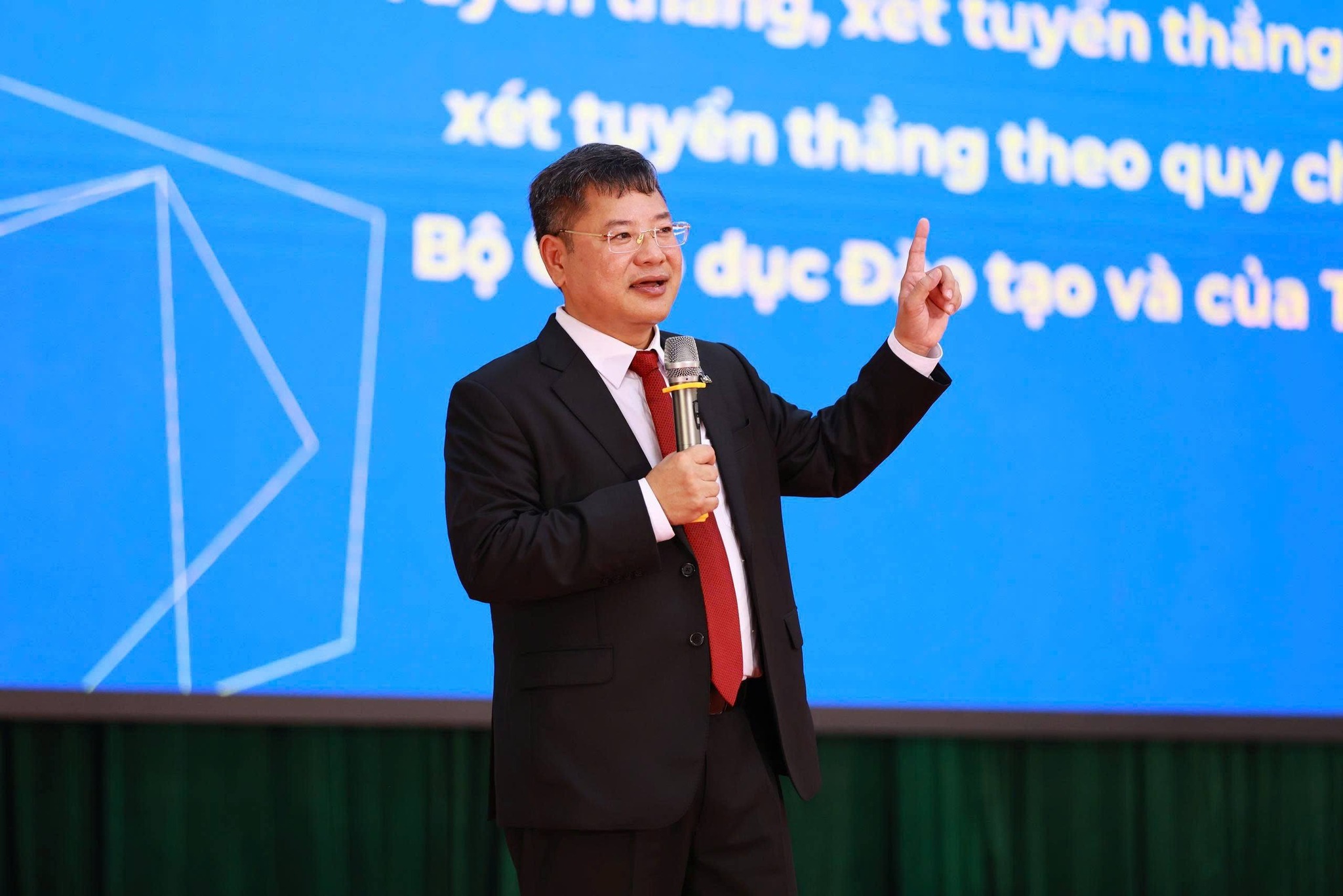 Tại hội trường, các em học sinh đã được lắng nghe những thông tin tuyển sinh quan trọng nhất cho năm 2026. ThS. Vũ Đình Lê – Phó Trưởng phòng phụ trách Phòng Tư vấn tuyển sinh đã giới thiệu chi tiết về các ngành đào tạo cốt lõi như Luật, Luật Thương mại quốc tế, Quản trị - Luật, Quản trị kinh doanh, Ngôn ngữ Anh,... cũng như các ngành dự kiến mở mới như Thương mại điện tử, Kinh tế số, Công nghệ tài chính, Ngôn ngữ Trung Quốc (chuyên ngành tiếng Trung pháp lý).