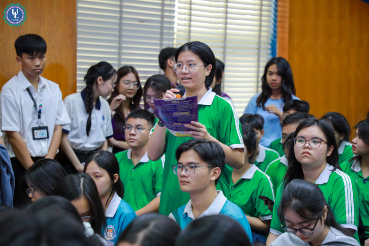 Tiếp nối chương trình, phần giao lưu đặt câu hỏi diễn ra sôi nổi với sự tham gia trực tiếp của đội ngũ giảng viên Trường Đại học Luật TP. HCM. Tại đây, học sinh được giải đáp những thắc mắc liên quan đến ngành học, môi trường đào tạo và định hướng nghề nghiệp.