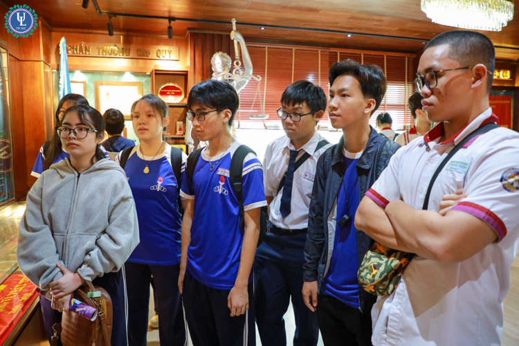 Bên cạnh đó, học sinh được trải nghiệm lớp học thực tế tại trường, tham quan toàn bộ khuôn viên ULAW, gồm thư viện, phòng truyền thống, hệ thống giảng đường, khu tự học,… và đặc biệt là các phòng học chất lượng cao. Hoạt động trải nghiệm và tham quan giúp học sinh tiếp cận rõ hơn mô hình đào tạo cũng như cơ sở vật chất của nhà trường, từ đó có thêm thông tin để định hướng lựa chọn ngành học trong bậc đại học sắp tới.