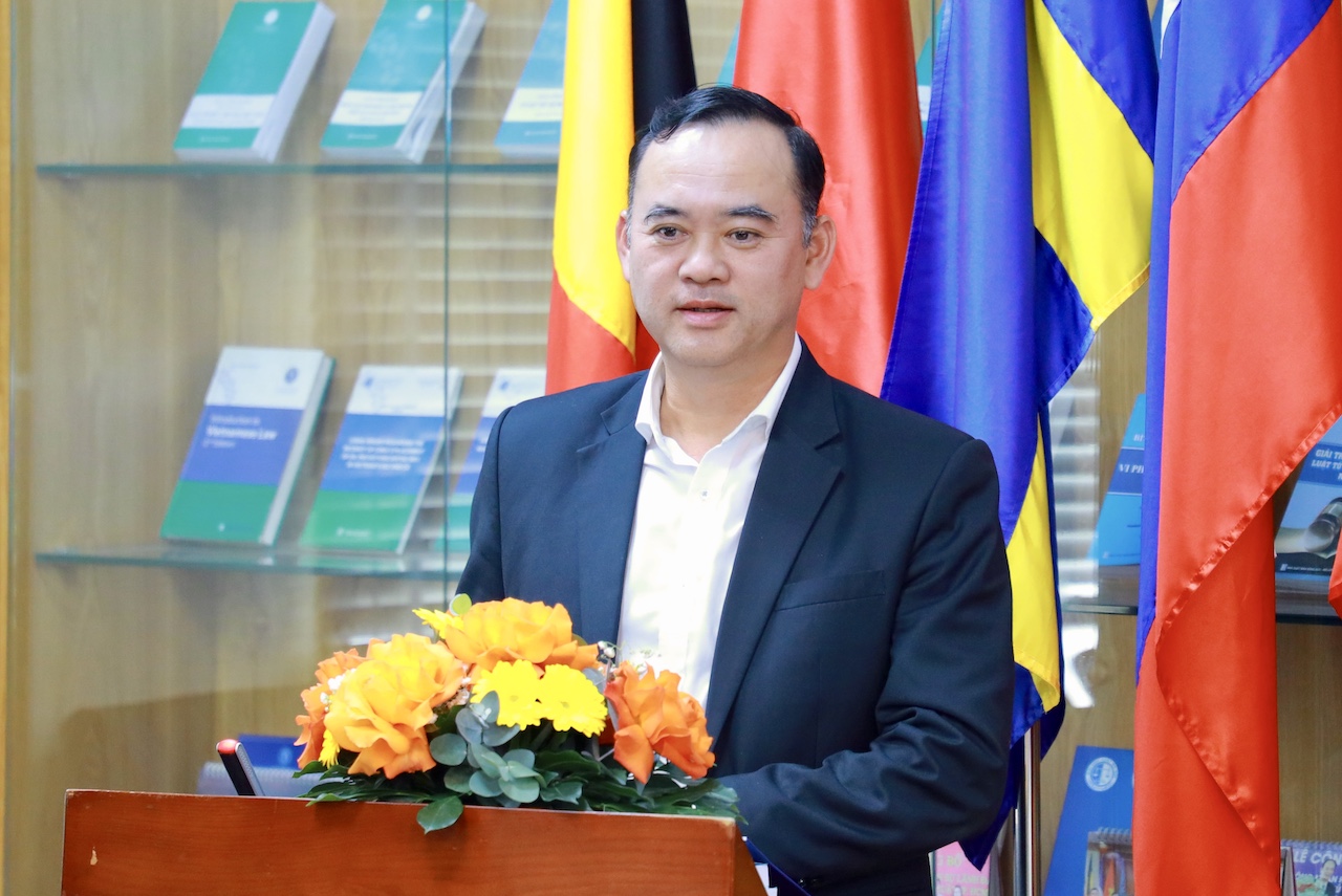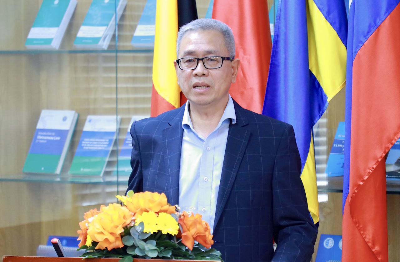 Dr. Lê Trường Sơn, Rector of Ho Chi Minh City University of Law, delivers his remarks at the MOU signing ceremony
