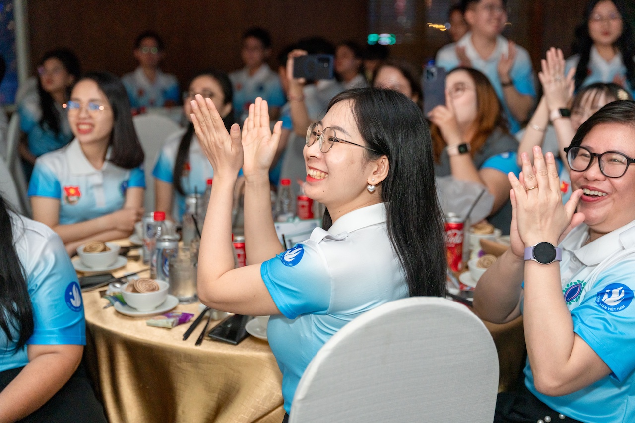 Following the leadership speeches and heartfelt alumni sharing, the atmosphere became contemplative as the video “We Are ULAW Youth Union and Student Association Officers” was screened. Familiar images, stories, and faces across generations evoked a long journey of dedication, responsibility, and youthful enthusiasm in Youth Union and Student Association work—helping today’s generation more deeply appreciate the continuity of service spirit and pride in Ho Chi Minh City University of Law.