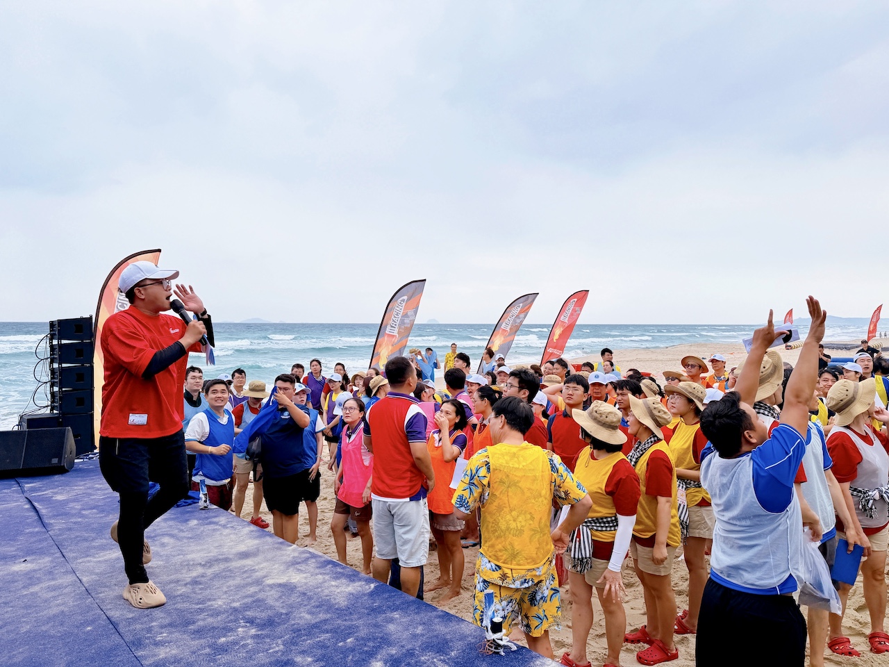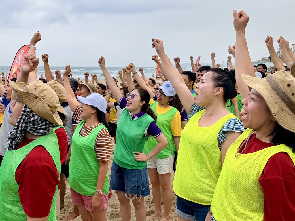 Later that afternoon, the beaches of Cam Ranh transformed into an arena of laughter, teamwork, and spirited competition. Teambuilding games unfolded with enthusiasm, testing coordination, endurance, and creativity among the teams. Professors accustomed to lecterns and lesson plans, along with administrative staff usually immersed in their offices, found themselves sprinting across the sand, cheering for their teammates, and celebrating shared victories. In those moments, distinctions between departments, generations, and professional roles seemed to dissolve, replaced by a sense of collective joy and belonging.